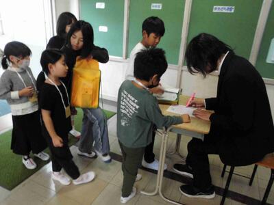 不安がる来年度の1年生に優しく声をかけるすてきなお兄さんお姉さんでした。