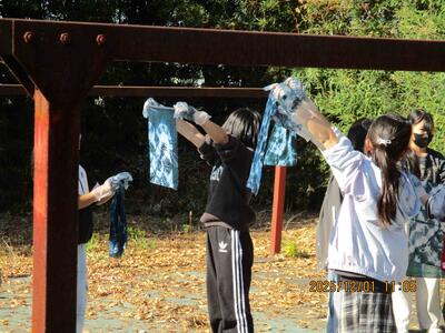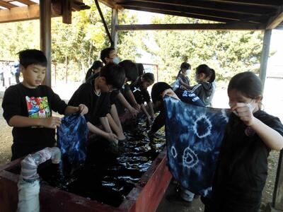 中島紺屋さんにて藍染体験をしました。冷たい水で手が痛くなったけど、すてきなオリジナルハンカチが完成しました。